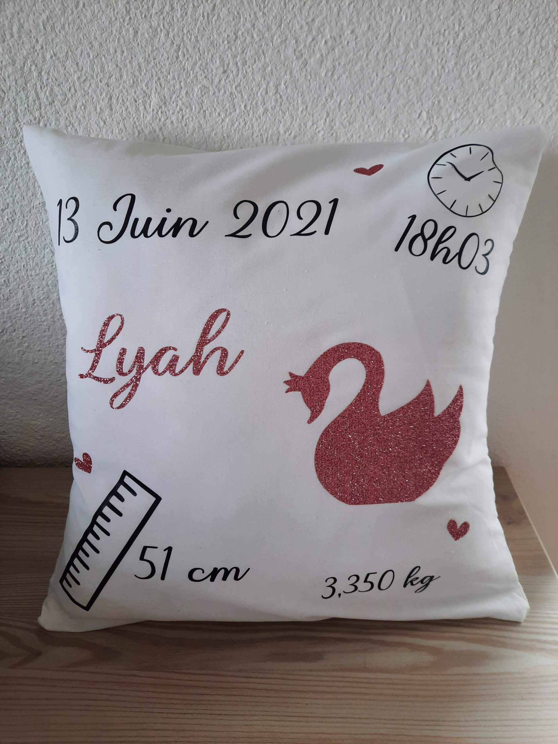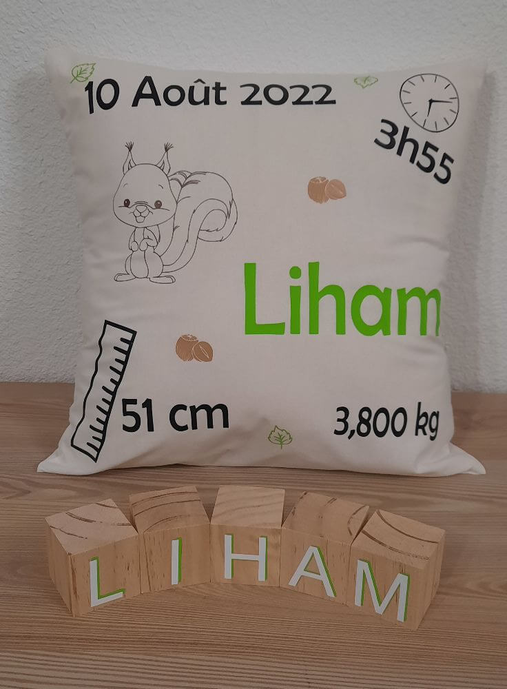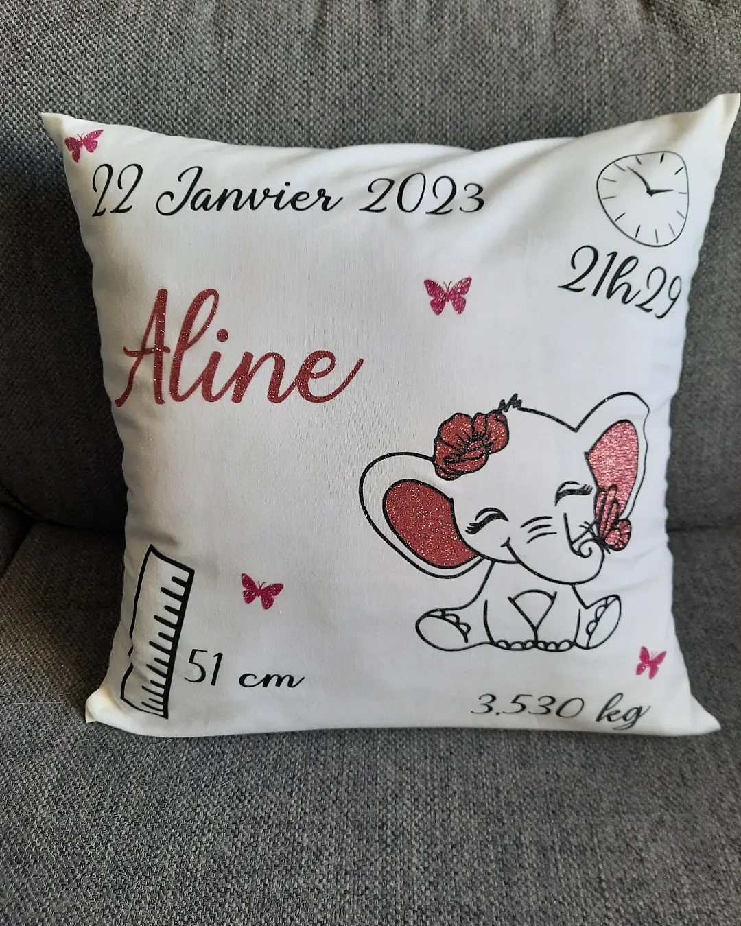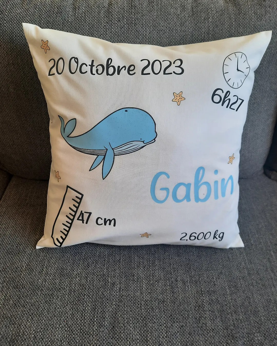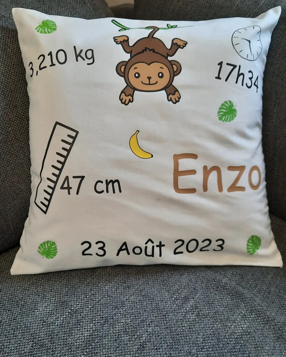 Célébrez l’arrivée de bébé avec un coussin de naissance unique, entièrement réalisé à la main. À la fois décoratif et rempli d’émotion, ce coussin personnalisé reprend les informations de naissance de votre enfant. Le thème et les couleurs sont adaptés à l’univers de sa chambre pour une création parfaitement harmonieuse.
