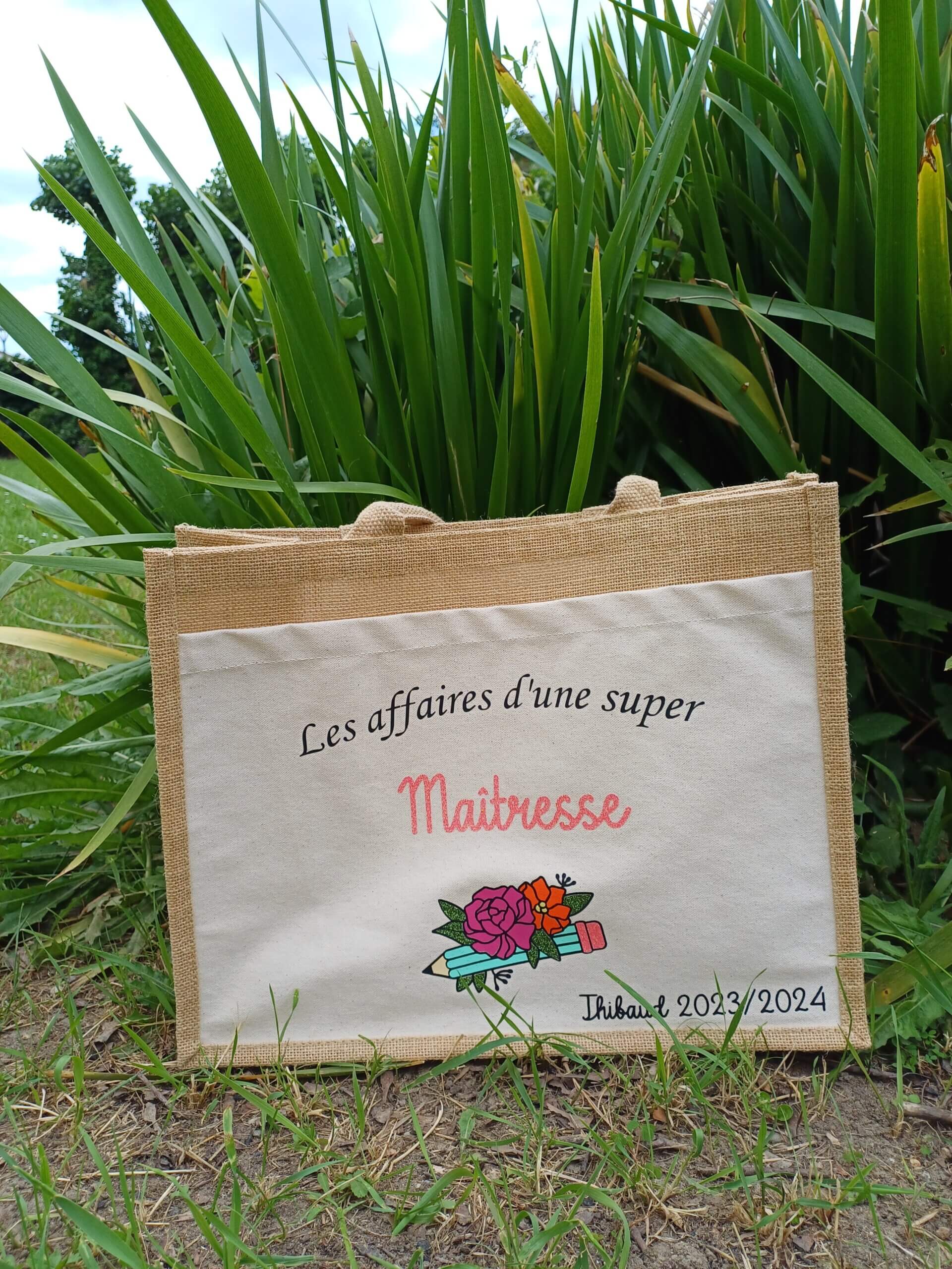Sac en toile de jute et coton intérieur imperméable avec une poche devant